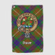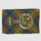 Clan Fraser crest badge surrounded by a strap and buckle over hunting tartan background. Custom text.