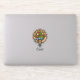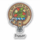 Clan Fraser crest badge surrounded by a strap and buckle over weathered hunting tartan background. Custom text.