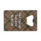 Clan Fraser crest badge surrounded by a strap and buckle over weathered hunting tartan background. Custom text on both sides.