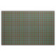 Fabric with the Clan Fraser hunting tartan, dated to 1842, designed at the request of Lord Lovat for use by the Inverness and Nairn militia. Traditional Scottish plaid pattern in shades of brown, bright green and blue with red and white highlights.