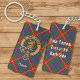 Clan Fraser of Lovat crest badge surrounded by a strap and buckle over tartan background. Custom text on both sides.