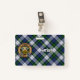Clan Gordon crest badge surrounded by a strap and buckle over dress tartan background. Custom text on both sides.