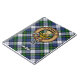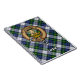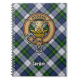 Clan Gordon crest badge surrounded by a strap and buckle over dress tartan background. Custom text.