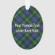 Clan Gordon crest badge surrounded by a strap and buckle over tartan background. Custom text on both sides.