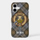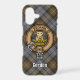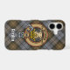 Clan Gordon crest badge surrounded by a strap and buckle over weathered tartan background. Custom text.
