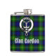 Show your Scottish pride! Clan Gordon crest badge with text on background of clan tartan.