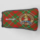 Clan Gregor or MacGregor crest badge surrounded by a strap and buckle over tartan background. Custom text.