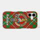 Clan Gregor or MacGregor crest badge surrounded by a strap and buckle over tartan background. Custom text.