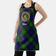 Clan Gunn crest badge surrounded by a strap and buckle over tartan background. Custom text.