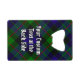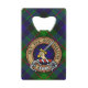 Clan Gunn crest badge surrounded by a strap and buckle over tartan background. Custom text on both sides.
