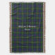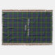 Colourful custom fringe end throw blanket made with graphics of the green, red, blue traditional Scottish clan Gunn tartan plaid pattern. White old world style text can be personalised to read what you want. Lovely gift idea for anyone.