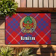 Clan Hamilton crest badge surrounded by a strap and buckle over red tartan background. Custom text.