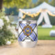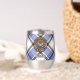 Clan Hannay crest badge surrounded by a strap and buckle over tartan background. Custom text on both sides.