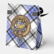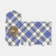 Clan Hannay crest badge surrounded by a strap and buckle over tartan. Custom text and monogram.