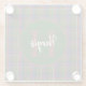 Monogrammed coaster done in a traditional and colourful Scottish clan Hargis tartan plaid pattern. A green circle has a monogram and family name. Personalise the monogram and name to suit your needs.