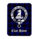 Scottish Clan Home crest badge and text on tartan background