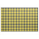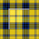 Fabric with the Clan Hughes tartan, a traditional plaid pattern dated to 1975 in bright yellow and black, with accents in shades of blue. Pattern repeats every 4". Special order smaller or larger scale via https://plaidwerx.com/contact.htm