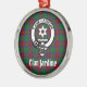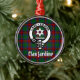 Show your family pride with this handsome ornament featuring Scottish Clan Jardine crest badge and customizable text on background of tartan plaid
