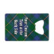 Clan Johnston crest badge surrounded by a strap and buckle over tartan background. Custom text on both sides.
