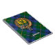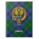 Clan Johnston crest badge surrounded by a strap and buckle over tartan background. Custom text.