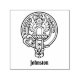 Clan Johnston crest badge surrounded by a strap and buckle. Custom text.