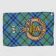 Clan Keith crest badge surrounded by a strap and buckle over tartan background. Custom text.