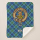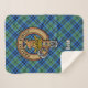 Clan Keith crest badge surrounded by a strap and buckle over tartan background. Custom text.