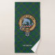 Clan Kennedy crest badge surrounded by a strap and buckle over tartan background. Custom text on each towel.