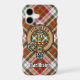 Clan MacAlister crest badge surrounded by a strap and buckle over dress tartan background. Custom text.