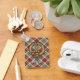 Clan MacAlister crest badge surrounded by a strap and buckle over dress tartan background. Custom text on both sides.