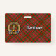 Clan MacAlister crest badge surrounded by a strap and buckle over tartan background. Custom text on both sides.