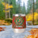 Clan MacAulay crest badge surrounded by a strap and buckle over tartan background. Custom text on both sides.