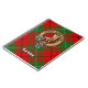 Clan MacAulay crest badge surrounded by a strap and buckle over tartan background. Custom text.