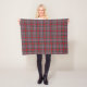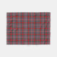 Fleece blanket with the Clan MacBean tartan, a traditional Scottish plaid pattern dated to 1847, in bright red, royal blue, forest green, and light purple with creamy white accents. Available in three sizes.