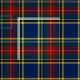 Fabric with the Clan MacBeth tartan, a traditional Scottish plaid pattern dated to 1856 in royal blue, red, and forest green, with black, bright yellow and creamy white accents. Pattern repeats every 4". Special order larger scale via https://plaidwerx.com/contact.htm