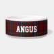Traditional red, blue, green, and white clan MacClure tartan plaid around this white ceramic dog bowl. Custom white text is ready to personalise with your pet's name. Makes a great gift idea to a new dog owner.