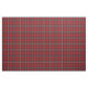 Fabric in the family tartan for Clan MacClure, a traditional Scottish plaid pattern from 1999 in red, green, and blue, with black and white accents. Pattern repeats every 4". Special order smaller or larger scale via https://plaidwerx.com/contact.htm