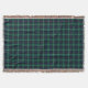 Throw blanket with a dark blue, green, black, white, and red Scottish tartan. Traditional MacDonald of the Isles family plaid pattern from 1842. Matching accent pillows available.