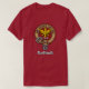 Clan MacDonald of Keppoch crest badge surrounded by a strap and buckle over tartan background. Custom text.