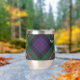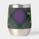 Clan MacDonell of Glengarry crest badge surrounded by a strap and buckle over tartan background. Custom text on both sides.