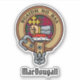 Clan MacDougall crest badge surrounded by a strap and buckle over tartan background. Custom text.
