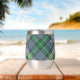Clan MacDowall crest badge surrounded by a strap and buckle over tartan background. Custom text on both sides.
