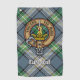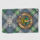 Clan MacDowall crest badge surrounded by a strap and buckle over tartan background. Custom text.