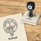Clan MacDowall crest badge surrounded by a strap and buckle. Custom text.