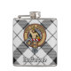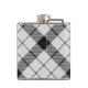 Clan MacFarlane Crest over Black and White Tartan Hip Flask