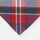 Clan MacFarlane crest badge surrounded by a strap and buckle over dress tartan background. Custom text.