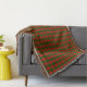 A quality printed throw has its advantages. This is a much finer weave throw than its loopier cousins, and though lighter, it is worth the investment for custom room accessorizing. The back is much prettier than the typical brown, and the fringe on the long sides very vivid, the selvage nicely done. Before photographing, I washed the throw in cold water, delicate, with a thicker woven throw the same size. On tumble dry low, this throw was dry in half the time as the other. This is a very practical quality if you use throws for furniture covers or to wrap up in frequently. The sleekness of the fabric makes it a great layer for accenting or protecting without the feeling of sitting on too much stuff. Perfect for napping or when you feel a light chill coming on. The color printing is beautiful and on this fabric, matched the design and color of my Photoshop image. This is an advantage for blending room fabrics and colors. The fringe on the short sides prints the colors from the design image and therefore varies from the side fringe. I streaked a white fractal line through the plaid pattern to give the illusion of weaving. This printed as crisp as an illusory thread, and put some white in the short side fringe, showing another advantage of print vs loomed- for artistic purposes, line lines, detail, and color integrity can be planned and preserved. My loomed throws have color limitations and more of a needlepoint texture. Print throws reproduce an exact image. The throw felt a little stiff straight out of the package, but this went away in the first delicate wash. Of course I searched the wash water for ink or bleeding and there was none.