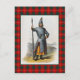 Postcard with a digitally cleaned and enhanced vintage watercolor illustration by Scottish artist Robert Ronald McIan, dated to 1845. Framed with the Clan MacFie tartan, a traditional plaid pattern in bright red and forest green. Digital tartan image created by Susan Wallace of Plaidwerx using thread count provided by The Scottish Register of Tartans.