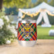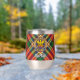 Clan MacGill crest badge surrounded by a strap and buckle over tartan background. Custom text on both sides.