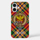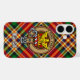 Clan MacGill crest badge surrounded by a strap and buckle over tartan background. Custom text.